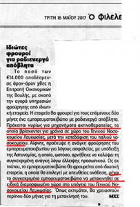 Στις 3 Δεκεμβρίου 2009 καταγγείλαμε δημόσια ότι μπουλντόζες στο παλιό Νοσοκομείο Λευκωσίας καταπλάκωσαν «κατά λάθος» και κατέστρεψαν 2 ακτινοθεραπευτικά μηχανήματα κοβαλτίου αξίας €1εκ. και ότι εξαφανίστηκε τρίτο μηχάνημα, το μηχάνημα επιφανειακής ακτινοβολίας ΡΑΝΤΑΚ, αξίας €300.000. Αργότερα το καταγγείλαμε στο Αρχηγείο Αστυνομίας καθώς και στο γραφείο του Γεν. Εισαγγελία. Δυστυχώς τίποτε δεν έγινε, όλοι τηρούσαν άκρα του τάφου σιωπή. Αργότερα μάθαμε ότι πριν καταστρέψουν με μπουλντόζες τα ακτινοθεραπευτικά μηχανήματα κοβαλτίου για να μην μεταφερθούν στο Νέο Νοσοκομείο και γίνει Κρατικό Ακτινοθεραπευτικό, έβγαλαν τις 2 πηγές κοβαλτίου και τις φύλαξαν, αλλά δεν μας έλεγαν πού. Πέρσι το 2016 καταγγείλαμε ξανά την υπόθεση στο Γεν. Εισαγγελέα μέσω δικηγορικού γραφείου και η απάντηση ήταν… δεν βρήκαν τίποτε μεμπτό! Καταστροφή ή και εξαφάνιση €1.3 εκ. κρατικής περιουσίας και δεν υπάρχει κανένα πρόβλημα!